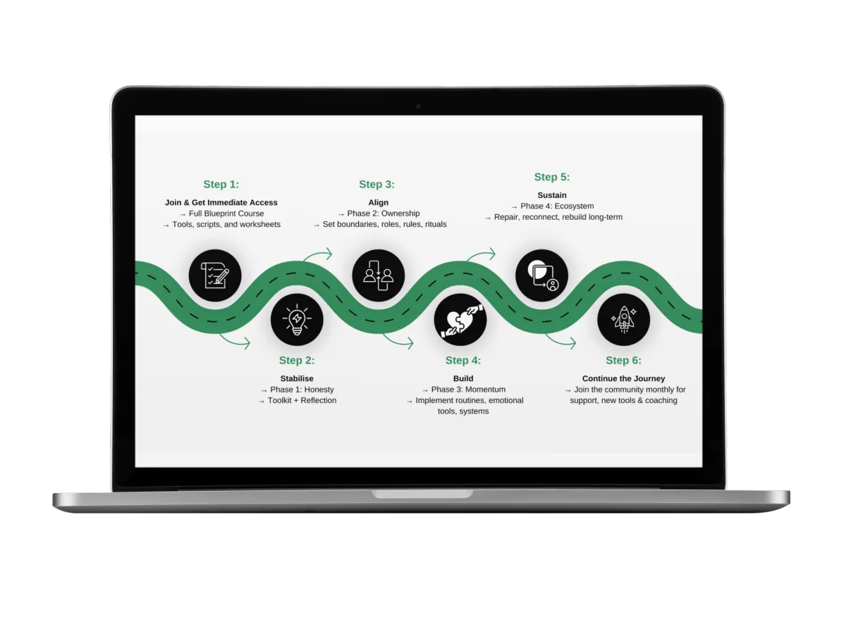 A self-paced course with a coaching and community membership that helps blended families rebuild calm, connection, and clarity through real tools, honest reflection, and ongoing support.